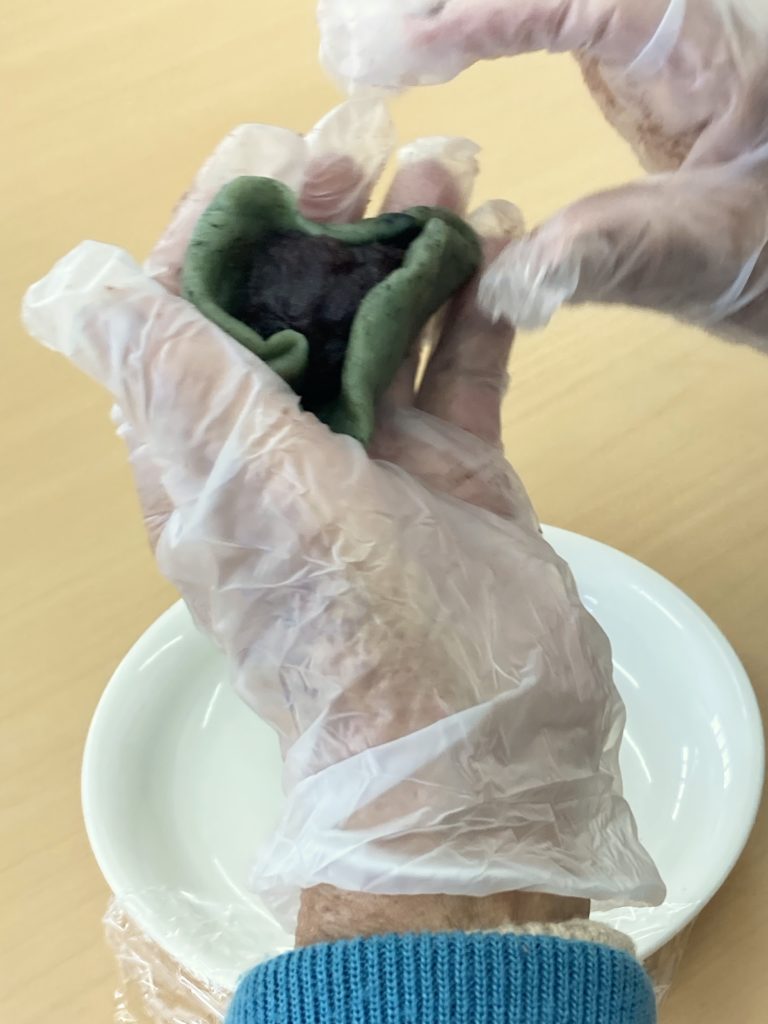 今月のおやつレクは、ひな祭りが近いということで、春らしく草餅を作りました!
